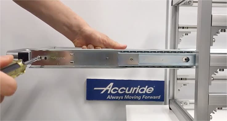 取付穴でタテ長穴のあるスライドレールの場合、タテ長穴を仮止めし、開閉動作などでスムーズに動くよう調整を行った後、本締めをするとよいでしょう。