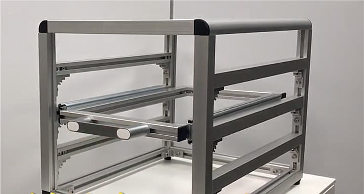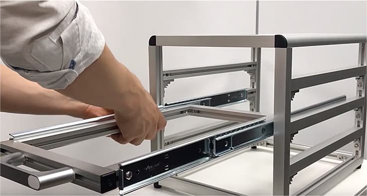 左右のスライドレールの平行度が出ていないとなめらかでスムーズな動きにならないだけでなく、スライドレールの耐久に影響を及ぼします。また異音などの発生原因ともなります。ヒキダシ、筐体の設計をする上で極力この平行を確保するようお願いします。