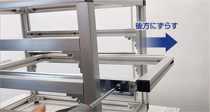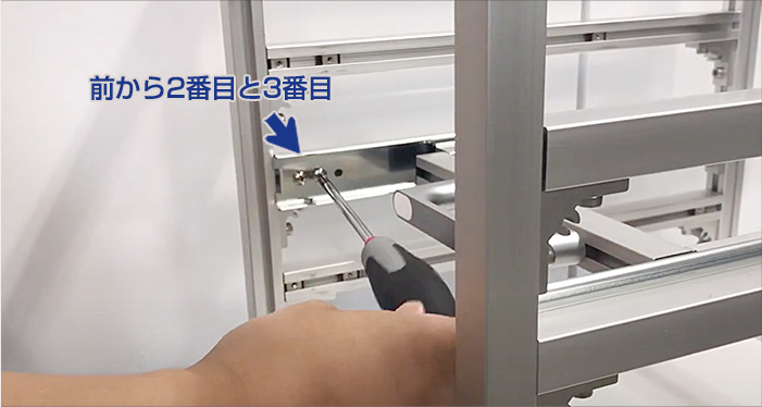 4反対側の相手方も②③と同様の手順で、キャビネットメンバーを仮締めします。