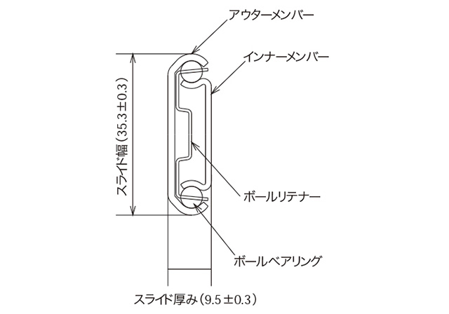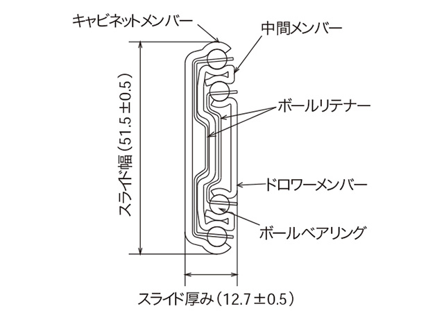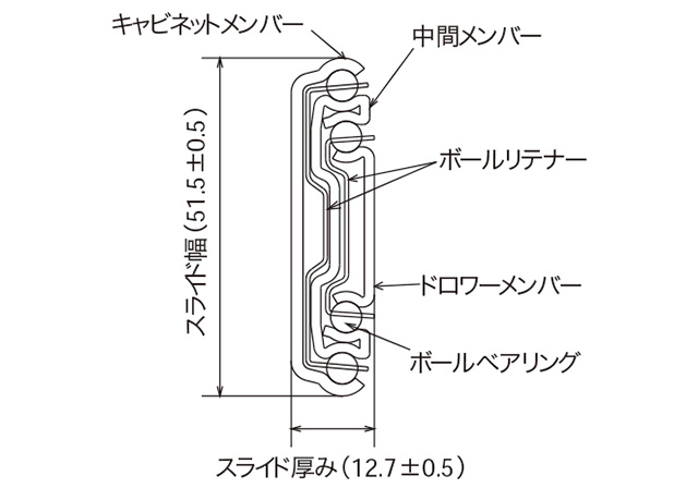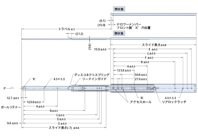 スライドレールを全開した時に、摩擦抵抗により最長トラベル位置でストップする機能のことを言います。その位置から、さらに強く引き抜くと引き抜けます。